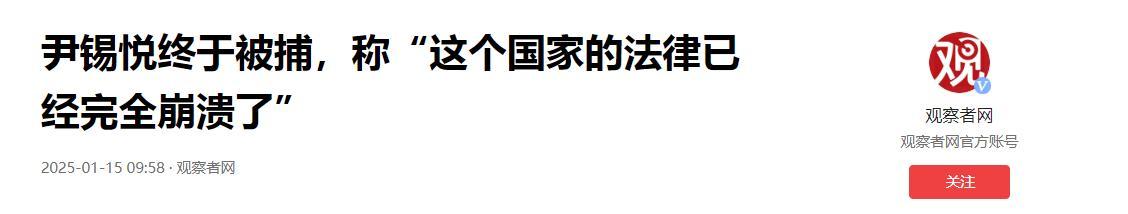 尹錫悅終於被捕,稱“這個國家的法律已經完全崩潰了” 觀察者網
