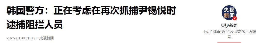 韓國警方:正在考慮在再次抓捕尹錫悅時逮捕阻攔人員 央視新聞