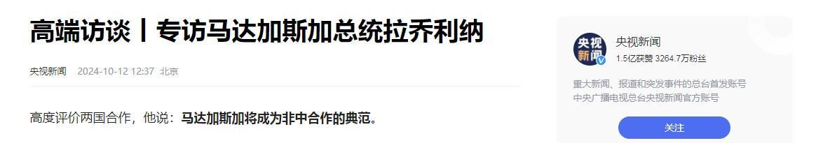 高端訪談丨專訪馬達加斯加總統拉喬利納 央視新聞