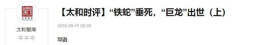 【太和時評】“鐵蛇”垂死,“巨龍”出世 太和智庫