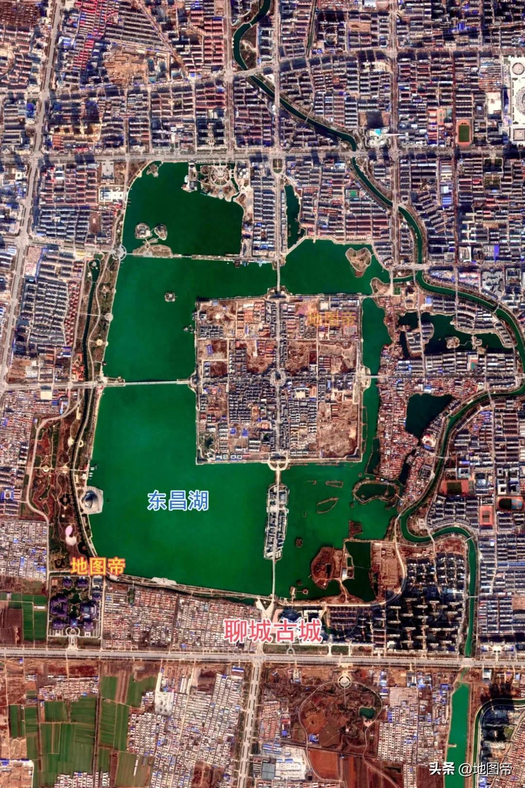 各位帝君,先看聊城航拍圖,四面環水,如果是冷兵器時代,你統率多少兵才能攻破?