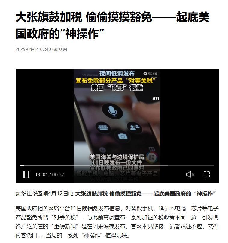 2025年4月,儘管特朗普一度高調加稅,但實際上已經“被迫”對華豁免了智能手機、電腦、芯片等電子產品。