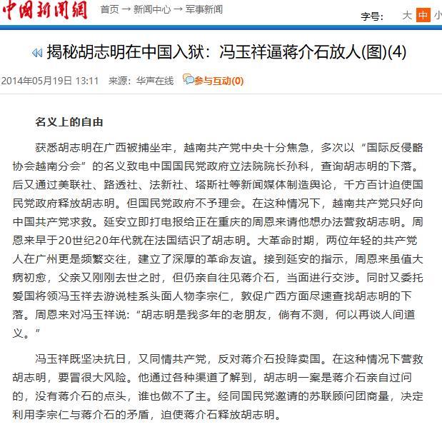 《揭祕胡志明在中國入獄:馮玉祥逼蔣介石放人(圖)(3)》,中國新聞網,2014-05-19