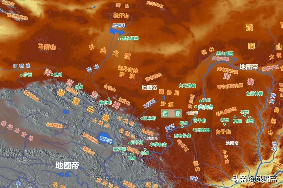 西夏鼎盛時期,擁有夏、銀、綏、宥、靜、靈、會、勝、甘、涼、瓜、沙、肅數州之地,即河套與河西走廊大部分地區,大致是今寧夏全部,甘肅、內蒙古、陝西的部分地區。