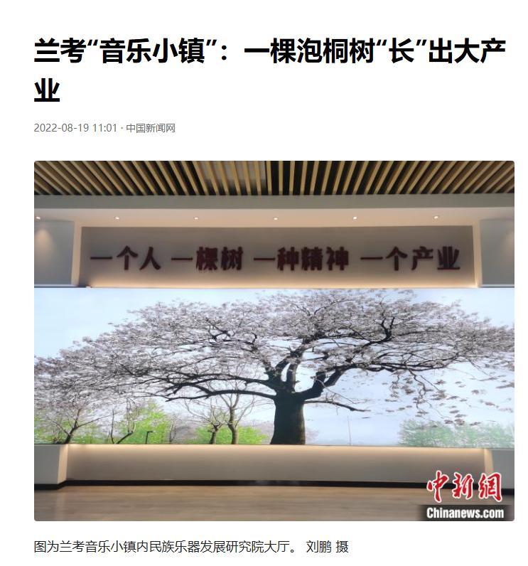 蘭考“音樂小鎮”:一棵泡桐樹“長”出大產業,中國新聞網,2022年08月19日