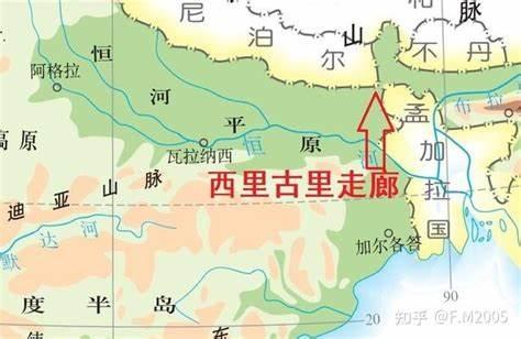 所謂“雞脖子”,就是著名的西里古裏走廊。這條寬僅22公里、長60公里的狹長地帶,連接印度東北七邦(阿薩姆、米佐拉姆、那加蘭、梅加拉亞、特里普拉、曼尼普爾、錫金)與本土,是5000萬人口和印度東部軍區的生命線。該走廊被尼泊爾、不丹和孟加拉國包圍,北面是中國,戰略上脆弱無比,被稱爲印度的“阿喀琉斯之踵”。