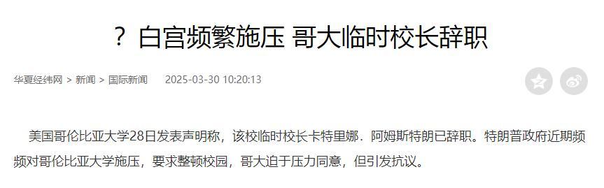 哥倫比亞大學就曾屈服於特朗普的強大壓力,選擇部分同意特朗普的要求,但這卻引發了本校師生的抗議和教育界同行的批評,以至於與政府締結協議的校長不得不辭職。