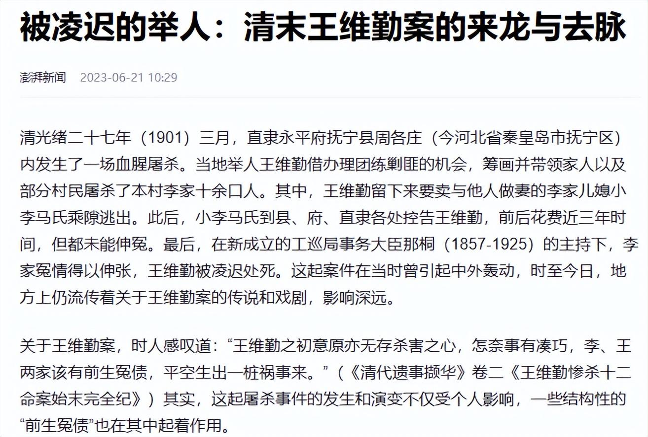 [4]被凌遲的舉人:清末王維勤案的來龍與去脈,澎湃新聞官方賬號,2023-06-21.