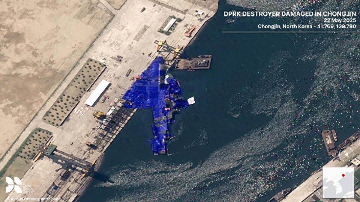 從衛星圖來看,截至5月26日,傾覆的“崔賢”級驅逐艦二號艦仍未被扶正。5000噸的艦體對於缺乏重型起重船的朝鮮來說,的確是個棘手的難題。清津造船廠正在專家團隊的指導下,按照日程計劃積極修復艦船平衡性,但進度緩慢,艦體上覆蓋的藍色防水布顯示出修復工作的緊迫性。然而,相比於修復工作的進展,朝鮮當局對事故責任人的處理速度卻異常迅猛。