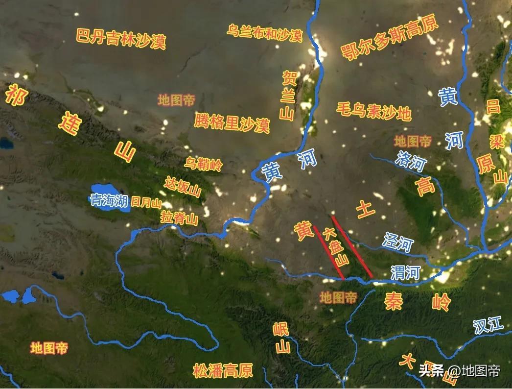 黃土高原從西往東分爲三個主要部分:隴西高原、隴東高原、呂梁山脈,而隴山位於隴西高原和隴東高原之間,黃河“幾”字這一豎在隴東高原與呂梁山脈之間。廣義的隴山又稱六盤山,南北長三百多千米;狹義的隴山分爲南北兩部分,以千河爲界,北部的六盤山南北長二百多千米,南部的隴山長一百多千米。