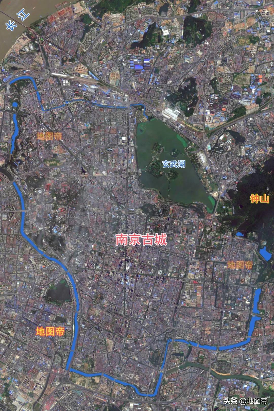 南京地處於長江下游中心,跨長江兩岸,主城區的東、南、北三面被鐘山環繞,西面臨長江。