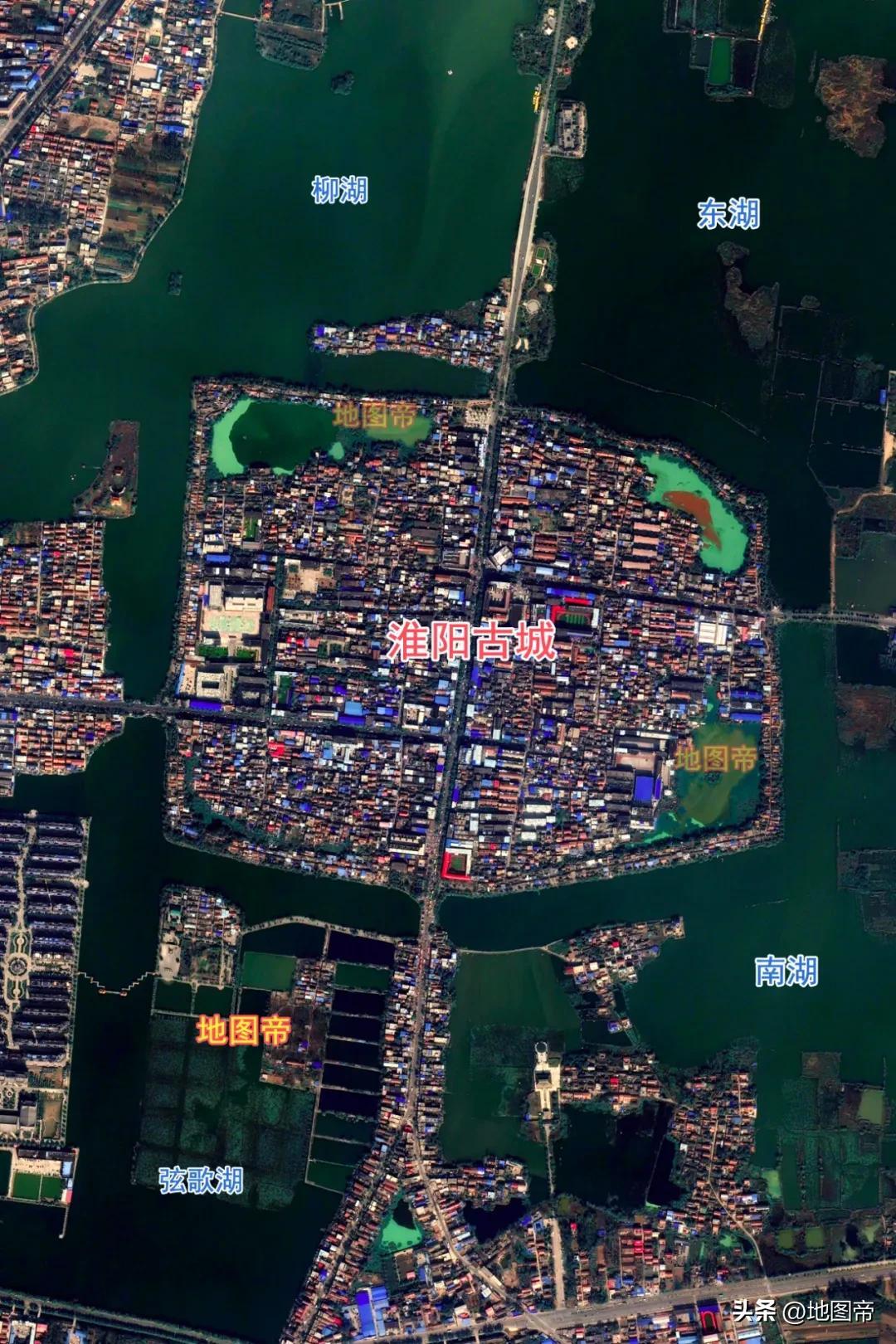 淮陽一不靠山,二不鄰河。淮陽古城位於龍湖中,湖中有城,城中有景。從空中俯瞰,像浮在水面上的巨大龜背。