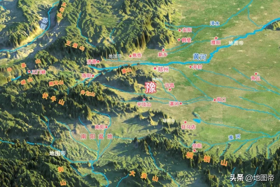 河南省地勢西高東低,山脈呈半圓形分佈,北部是太行山脈,西部是秦嶺的支脈華山、崤山、熊耳山、伏牛山等,南部是桐柏山、大別山,中間有嵩山。