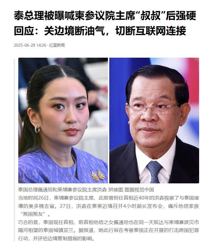 泰總理被曝喊柬參議院主席“叔叔”後強硬回應:關邊境斷油氣,切斷互聯網連接,紅星新聞,2025-06-28
