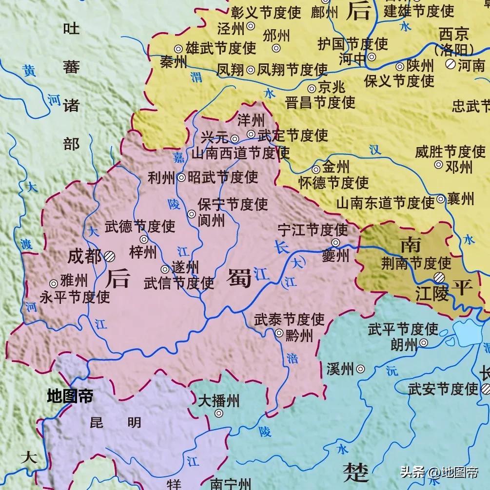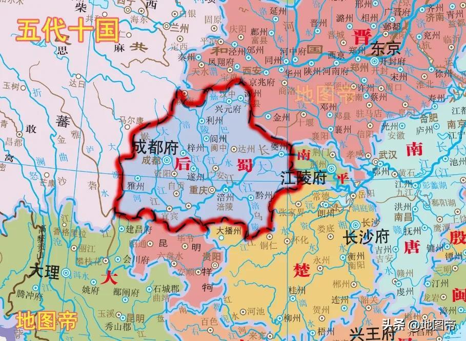 933年(後唐明宗長興四年),等李嗣源嚥了氣,孟知祥攻殺東川節度使董璋,吞併東川,盡佔巴蜀兩川之地,後唐立孟知祥爲蜀王。