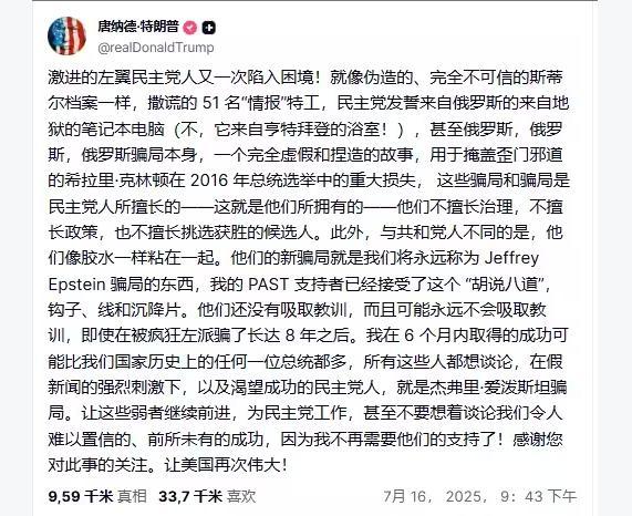 就這樣,這起本該被刻意遺忘的案件再度被抬上了輿論場,民主黨媒體大肆抨擊特朗普與愛潑斯坦是一丘之貉,暗示其與蘿莉島事件相關。