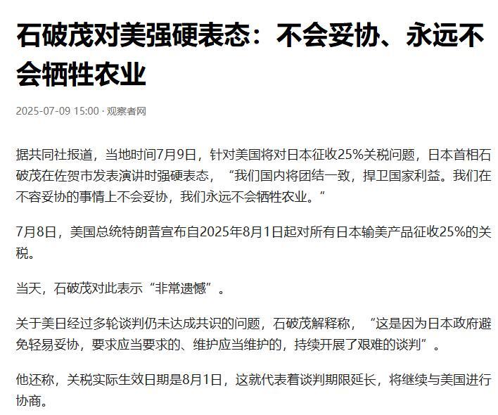 2025年7月9日,面對美方加徵25%關稅的通牒,石破茂罕見地怒了。