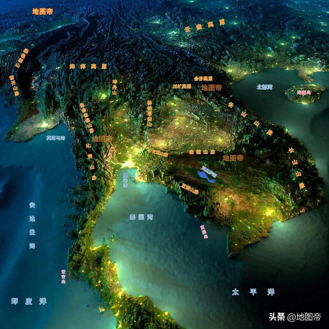 中南半島面積約207萬平方千米,大約是中國長江以南各省市總面積之和。中南半島海岸線約1.17萬千米,接近中國的2/3。半島上擠着緬甸、泰國、老撾、越南、柬埔寨、馬來西亞、新加坡7個國家,人口約3億,密度與中國南方不相上下。