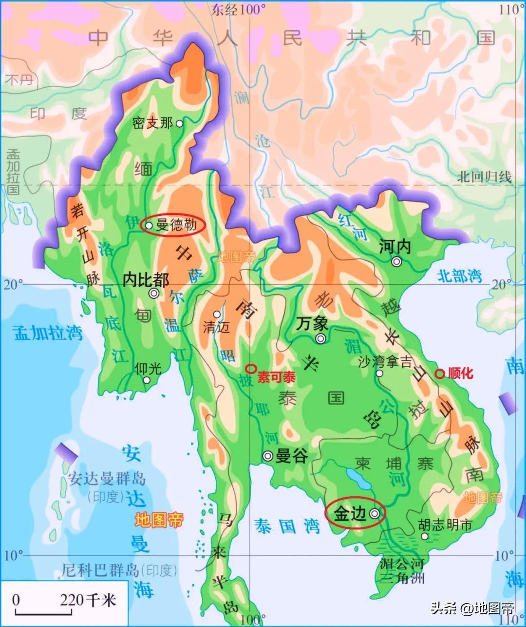 中南半島的古城,大部分在河流旁的平原上。從空中看這些古城,和我國的古城相似,多城方形。