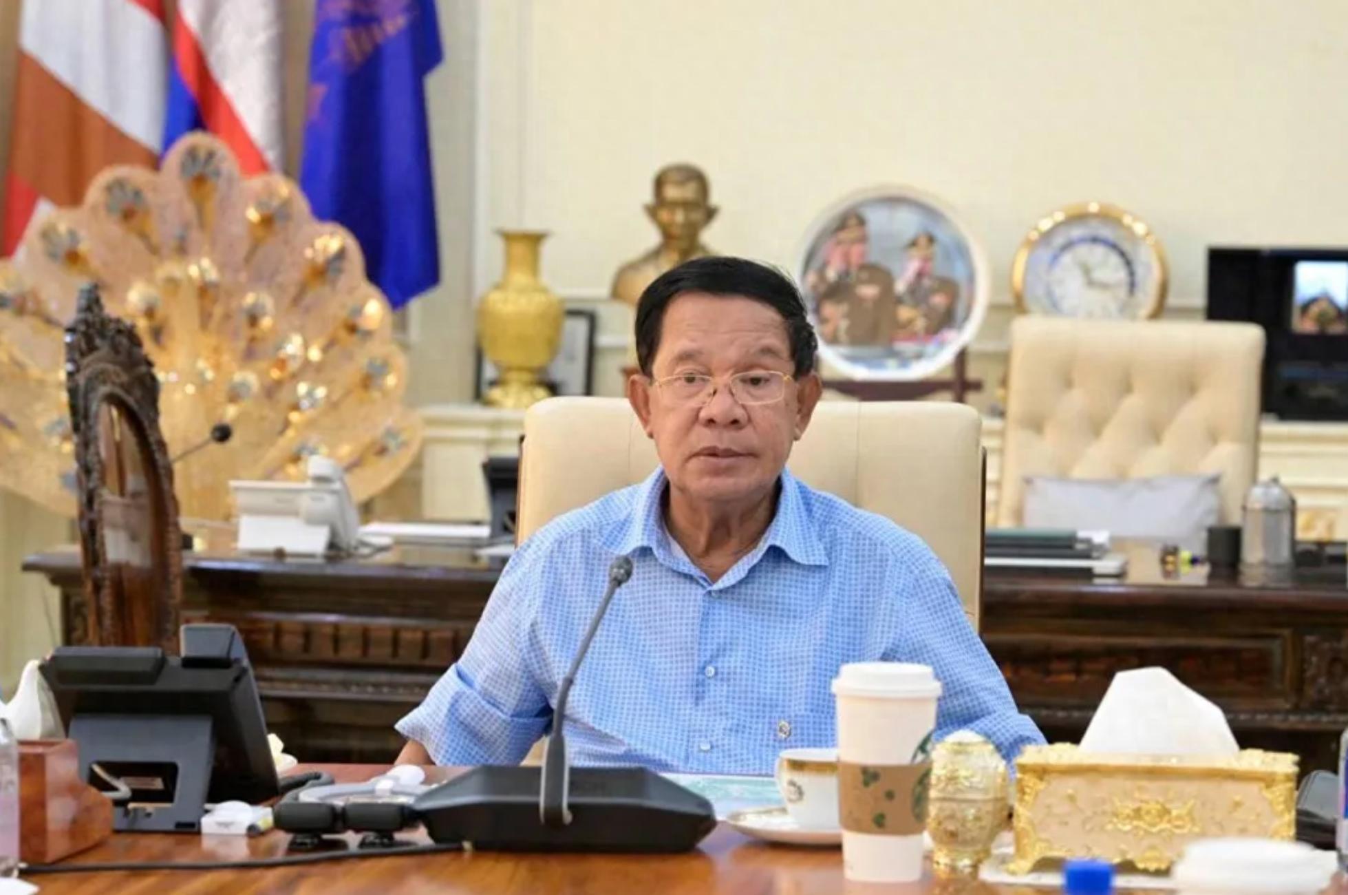 圖| 當地時間7月24日,洪森在自己的辦公室內拍下了照片,桌面可見三部手機
