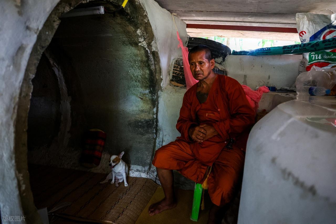 圖| 當地時間7月25日,泰柬邊境衝突升級,僧侶躲在防空洞內