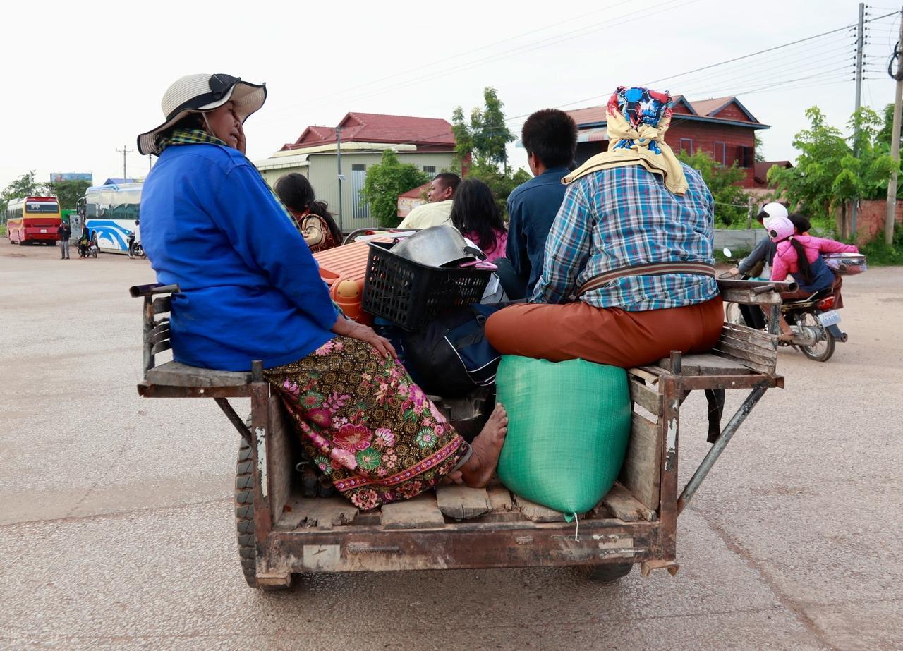圖| 當地時間7月24日,柬埔寨邊境地區居民正在逃離家園