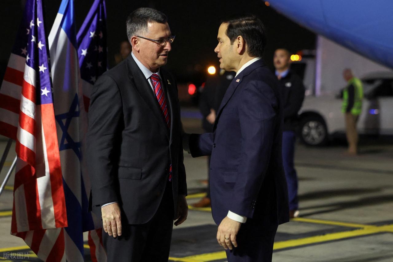 圖| 當地時間2025年2月15日,以色列特拉維夫,美國國務卿盧比奧訪問以色列,以外長薩爾在機場迎接