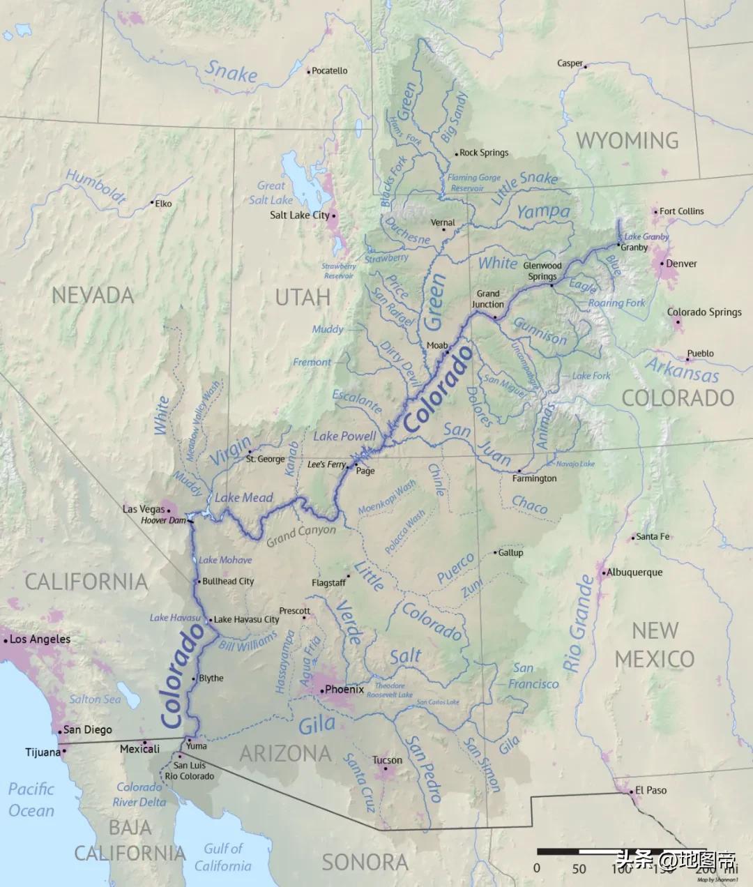米德湖爲什麼會乾涸呢?當然是科羅拉多河的水量大幅減少了,我們從人口、農業、旅遊開發等方面簡單分析。