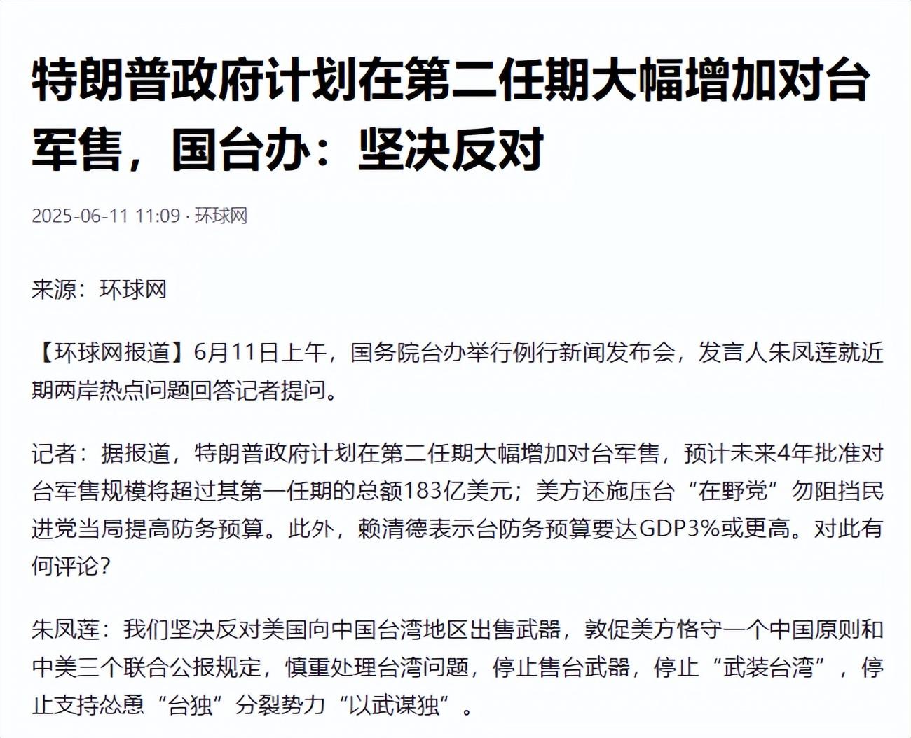 再到2025年特朗普重回白宮後,其第二任期內預計對臺軍售超過其第一任期的總額183億美元。