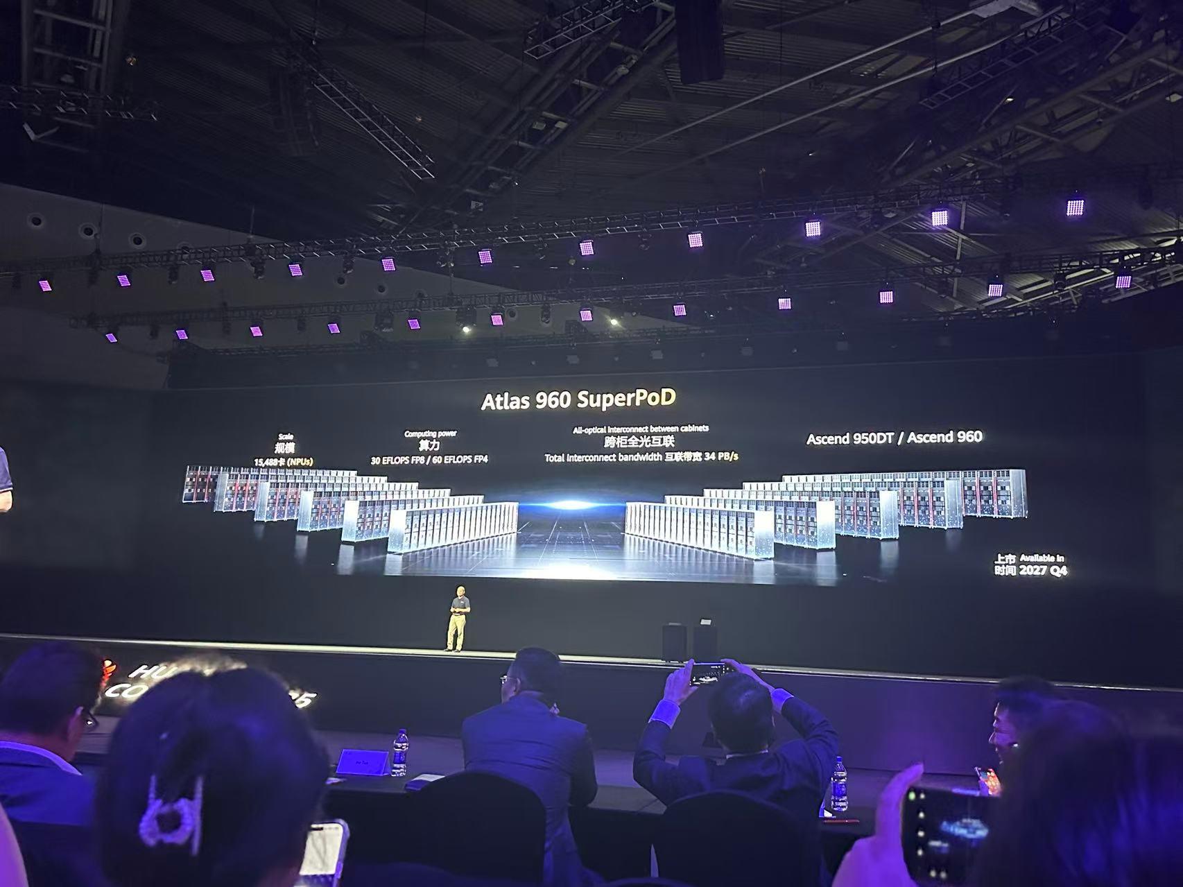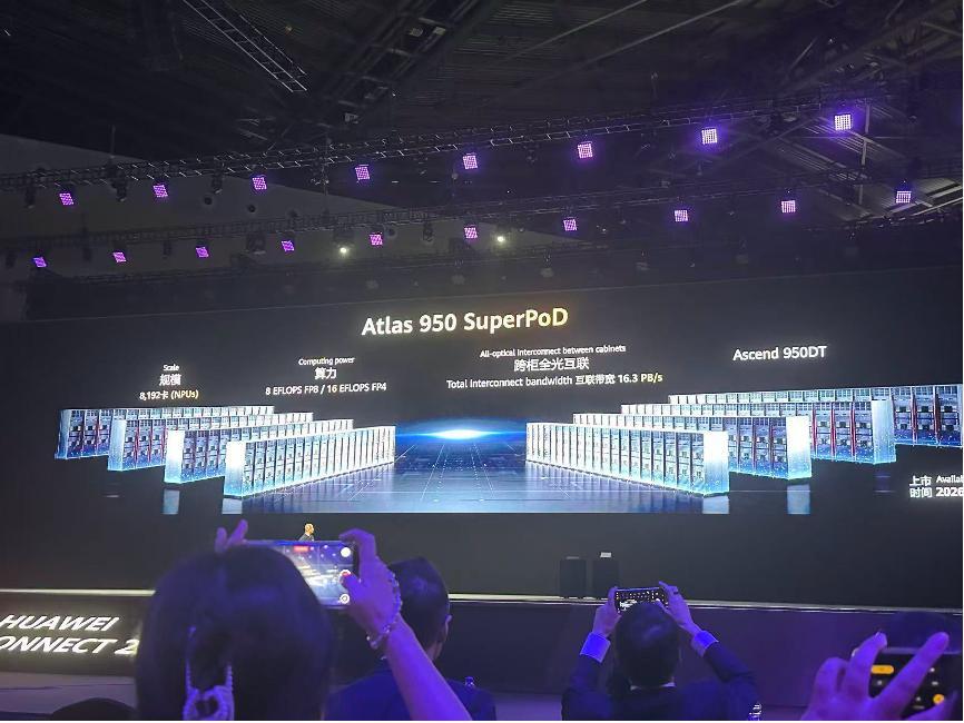 大會發布的Atlas950和Atlas960 SuperPoD,支持8192張乃至15488張昇騰卡,單個超節點即可形成全球最強算力。