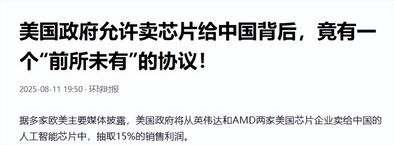 於是他出了一個頗具爭議的方案——允許英偉達和AMD等公司在對華銷售芯片時,將15%的收入上繳政府,作爲“上貢”條件。