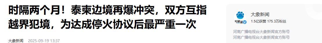 3.《時隔兩個月!泰柬邊境再爆衝突,雙方互指越界犯境,爲達成停火協議後最嚴重一次》2025-09-19 13:37 | 來源:大象新聞