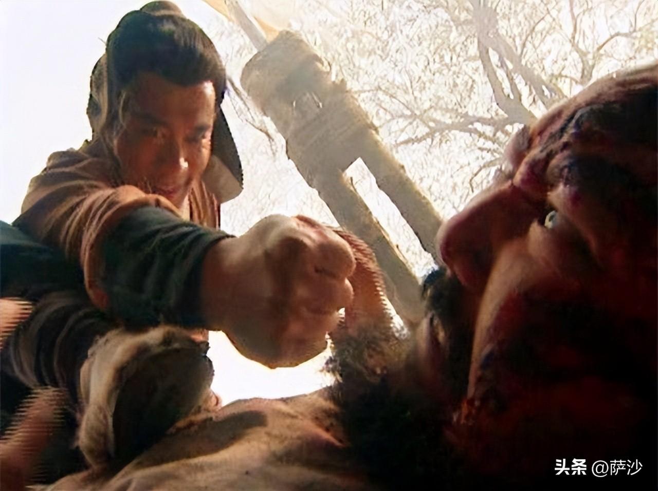 於是,武松輕鬆秒掉了兩個惡棍,消滅敵人的一半戰鬥力,又大大威懾了其餘兩個人。