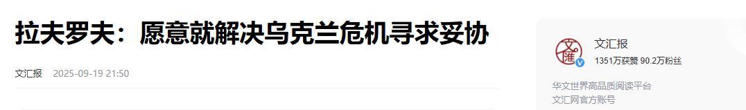 3.《拉夫羅夫:願意就解決烏克蘭危機尋求妥協》2025-09-19 21:50 | 來源:文匯報