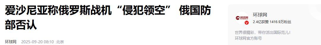 1.《愛沙尼亞稱俄羅斯戰機“侵犯領空” 俄國防部否認》2025-09-20 08:10 | 來源:環球網