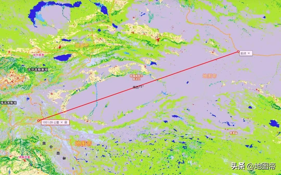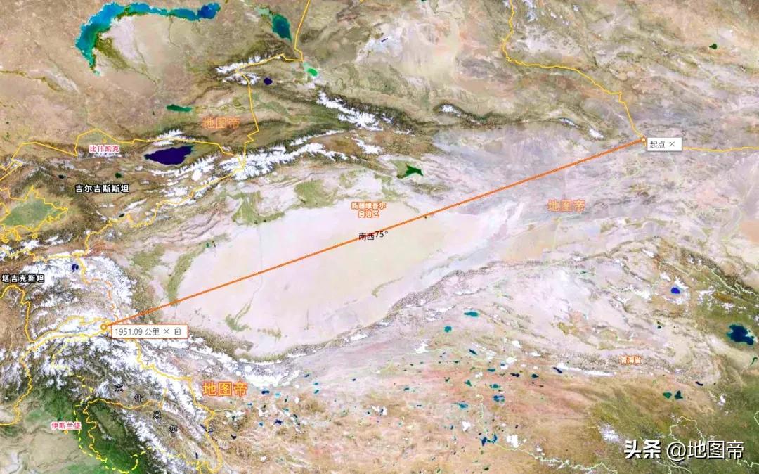 新疆從東部的哈密市,到西部克孜勒蘇柯爾克孜自治州,長度約1950千米。