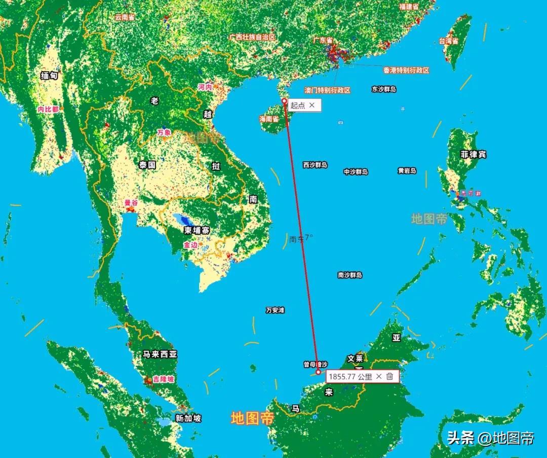 海南從北部海口附近的瓊州海峽,到南部曾母暗沙海域,長度超1800千米。