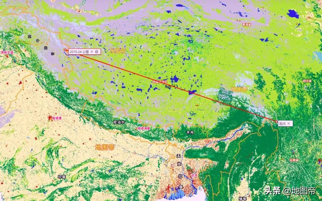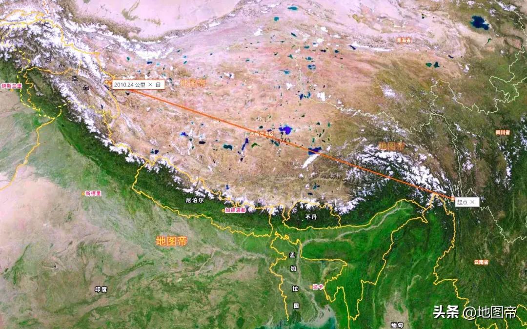 西藏從東南部的林芝市察隅縣,到西部阿里地區日土縣,長度超2000千米,僅次於內蒙古。