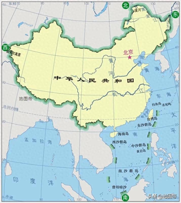 我國南北和東西的跨度都很大,南北兩端最大距離約5500千米,南北獲得的太陽光熱有顯著差異,形成了冷暖不同的氣候。冬季,當北方大地千里冰封、萬里雪飄時,南端依然溫暖如春。東西兩端最大距離約5200千米,時差達4個小時。當金色的陽光灑滿東端的烏蘇里江,人們都已看完日出歸來,西部的帕米爾高原卻還是滿天星斗,牧民和遊客仍在酣睡之中。