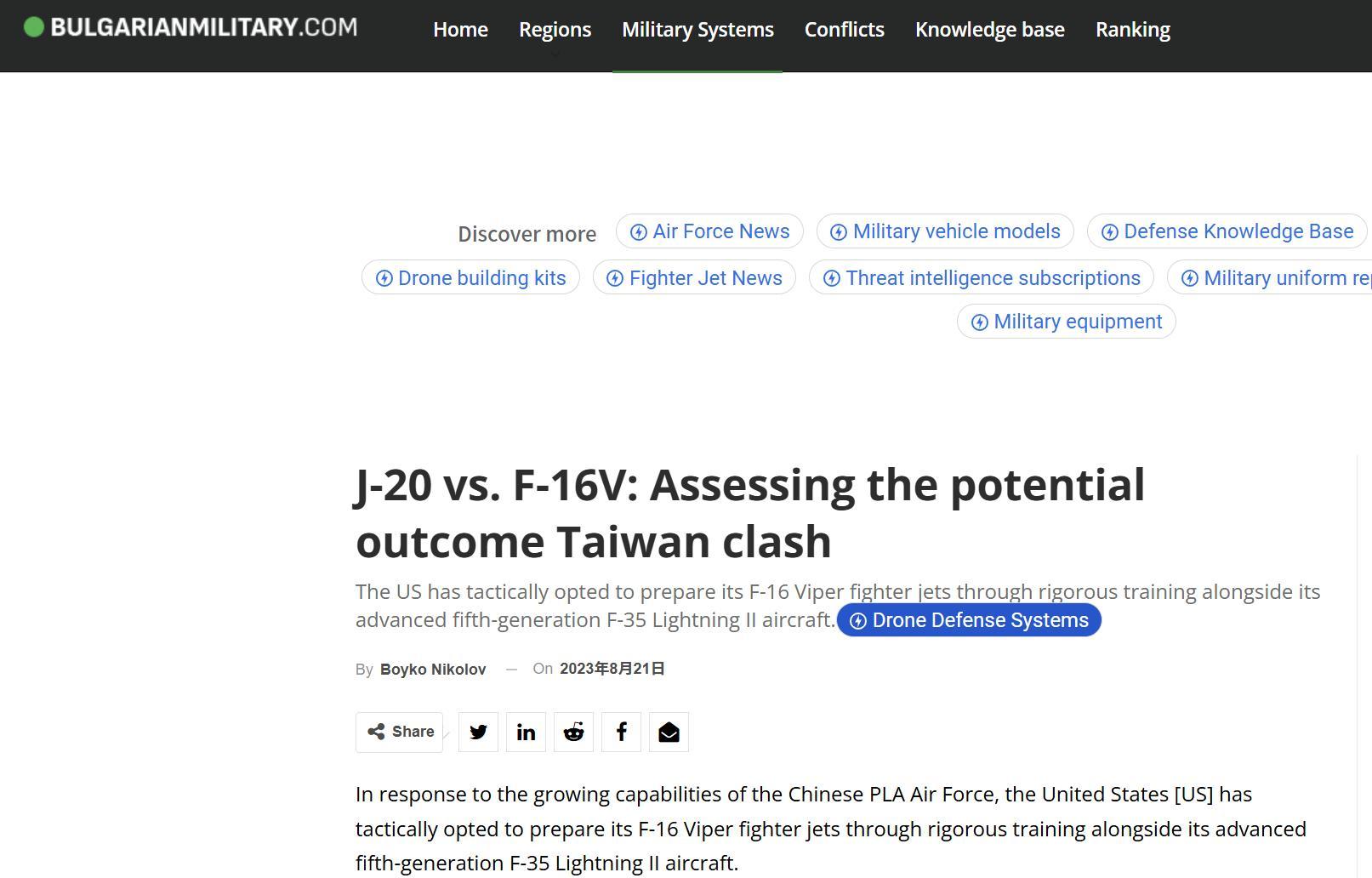 美國軍事雜誌《Bulgarianmilitar》認爲,美國根本不可能對臺出售F-35。原因有以下幾點?