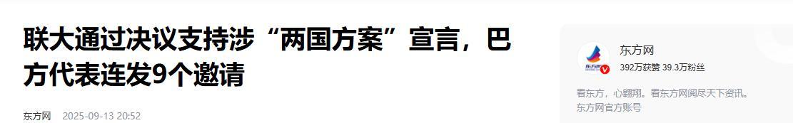 3.《聯大通過決議支持涉“兩國方案”宣言,巴方代表連發9個邀請》2025-09-13 20:52 | 來源:東方網