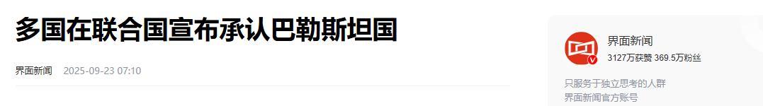 1.《多國在聯合國宣佈承認巴勒斯坦國》2025-09-23 07:10 | 來源:界面新聞
