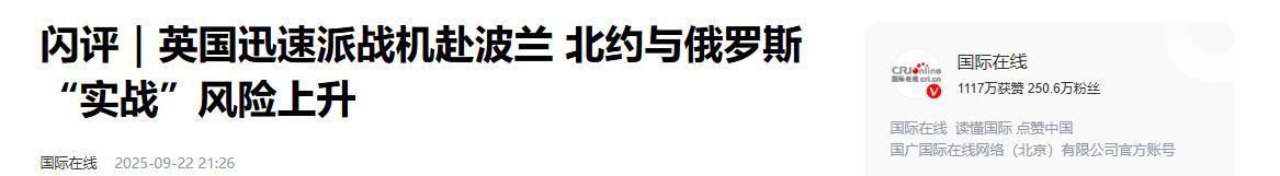 1.《閃評|英國迅速派戰機赴波蘭 北約與俄羅斯“實戰”風險上升》2025-09-22 21:26 | 來源:國際在線