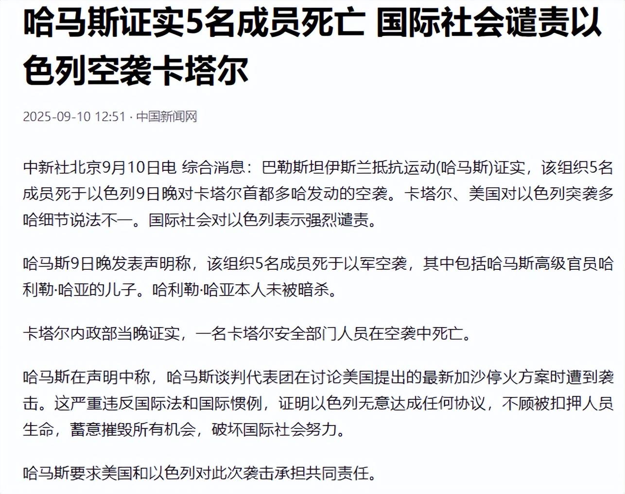 以色列“突襲”卡塔爾 整件事有多嚴重,新華網,2025年09月10日