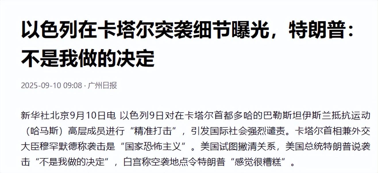 CNN炸了:和美國關係如此親密的卡塔爾都被以色列襲擊,下一個輪到誰?觀察者網,2025-09-10