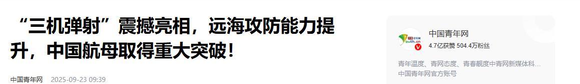 3.《“三機彈射”震撼亮相,遠海攻防能力提升,中國航母取得重大突破!》2025-09-23 09:39 | 來源:中國青年網