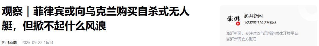 2.《觀察|菲律賓或向烏克蘭購買自殺式無人艇,但掀不起什麼風浪》2025-09-22 16:14 | 來源:澎湃新聞
