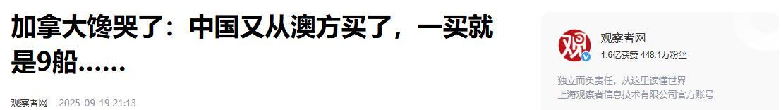 3.《加拿大饞哭了:中國又從澳方買了,一買就是9船……》2025-09-19 21:13 | 來源:觀察者網