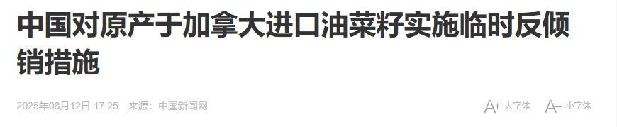 2.《中國對原產於加拿大進口油菜籽實施臨時反傾銷措施》2025-08-12 | 來源:中國新聞網