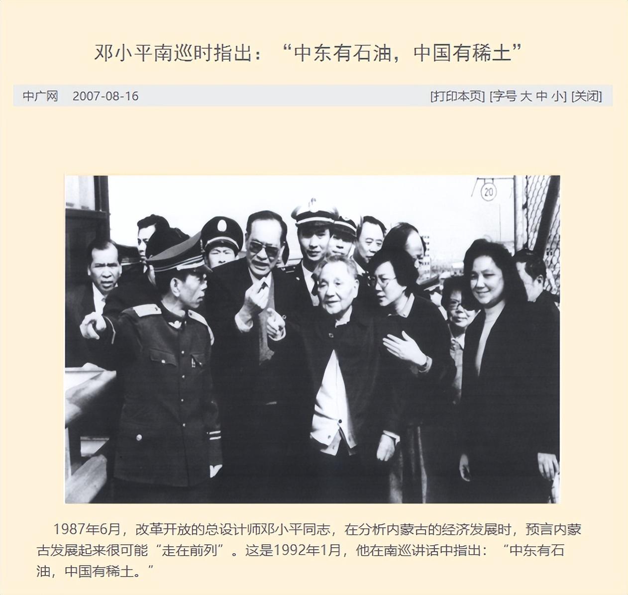 正如鄧公在1992年南方談話中所說的那句名言:“中東有石油,中國有稀土。”